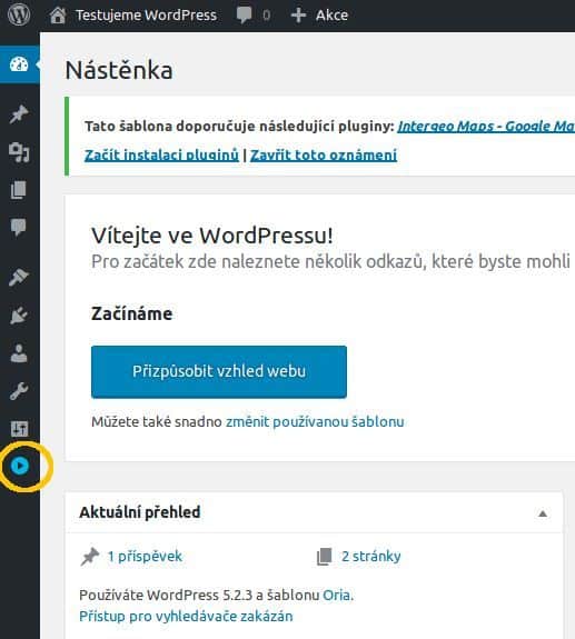 Pokud nejste přihlášení, přejděte na stránku vasedomena.cz/wp-login.php a přihlaste se. Budete potřebovat uživatelské jméno a heslo, které jste si zvolili při instalaci. Pokud potřebujete více informací, podívejte se na článek Přihlášení do WordPress.