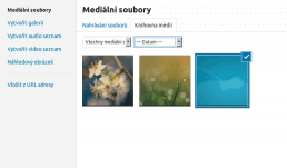 Nahrané obrázky vidíte v seznamu ihned, případně si je můžete kdykoli zobrazit kliknutím na Média. Pokud jste nahráli více druhů souborů, můžete si obrázky vyfiltrovat (rolovací menu Všechny mediální soubory > Obrázky). Zvolit si můžete ze dvou druhů zobrazení – mřížky nebo seznamu, níže vidíte příklad zobrazení obou módů.